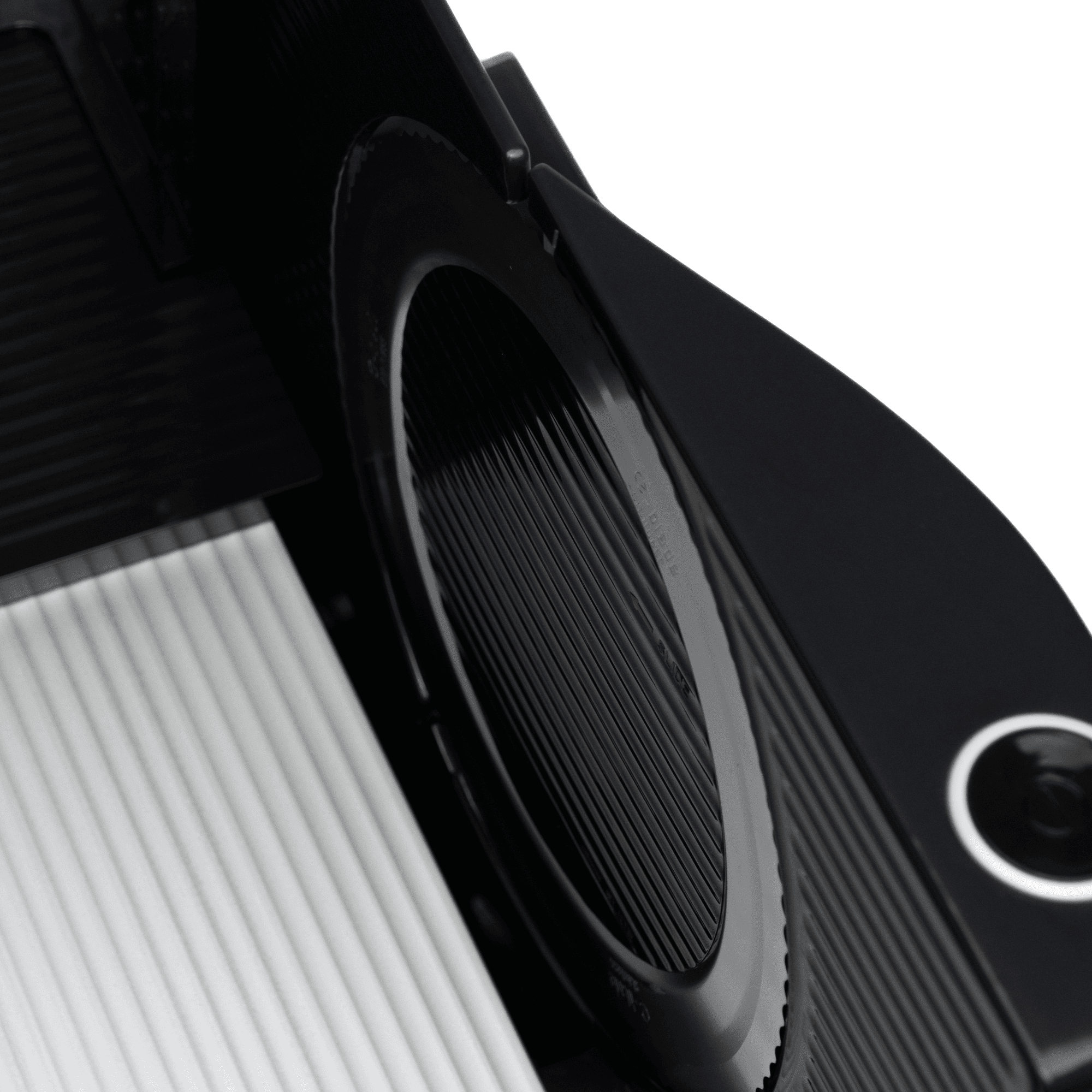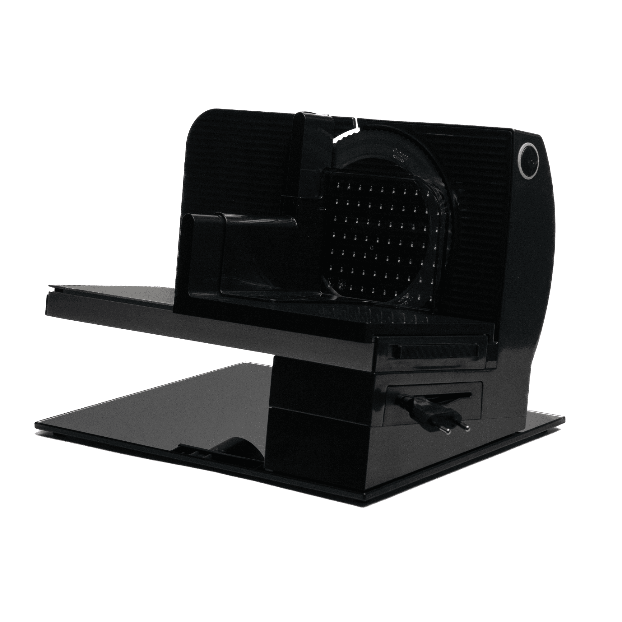 Stilsko dovršen rezalnik v elegantni črni barvi se brezhibno zlije z moderno kuhinjsko opremo ter doda pridih profesionalnosti in prestiža.